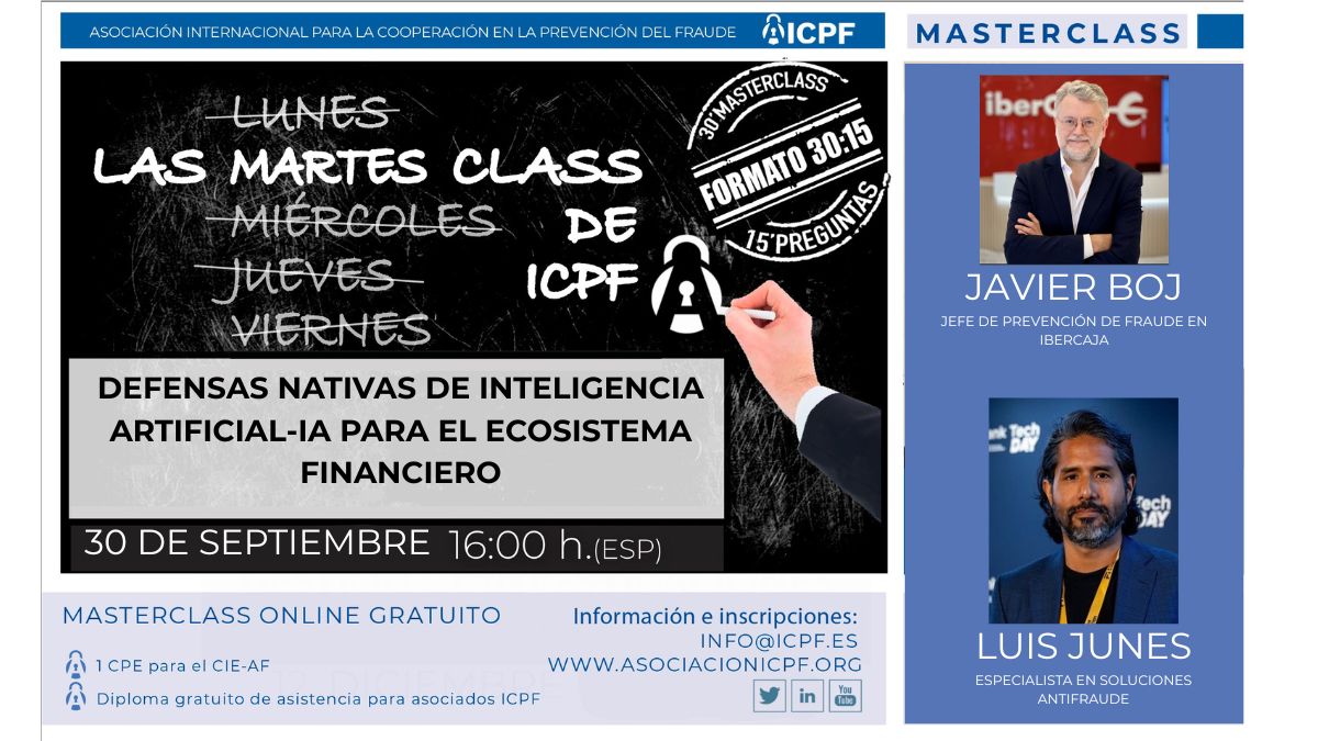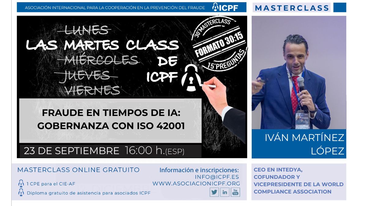 ICPF (Asociación Internacional para la Cooperación en la Prevención del Fraude) es una asociación sin ánimo de lucro dedicada a contribuir al desarrollo, difusión y profesionalización de la Prevención y Gestión del Fraude. Nuestra misión se centra en abordar el fraude desde un enfoque multidisciplinar que promueva la toma de conciencia y resalte la importancia de la lucha contra el fraude.